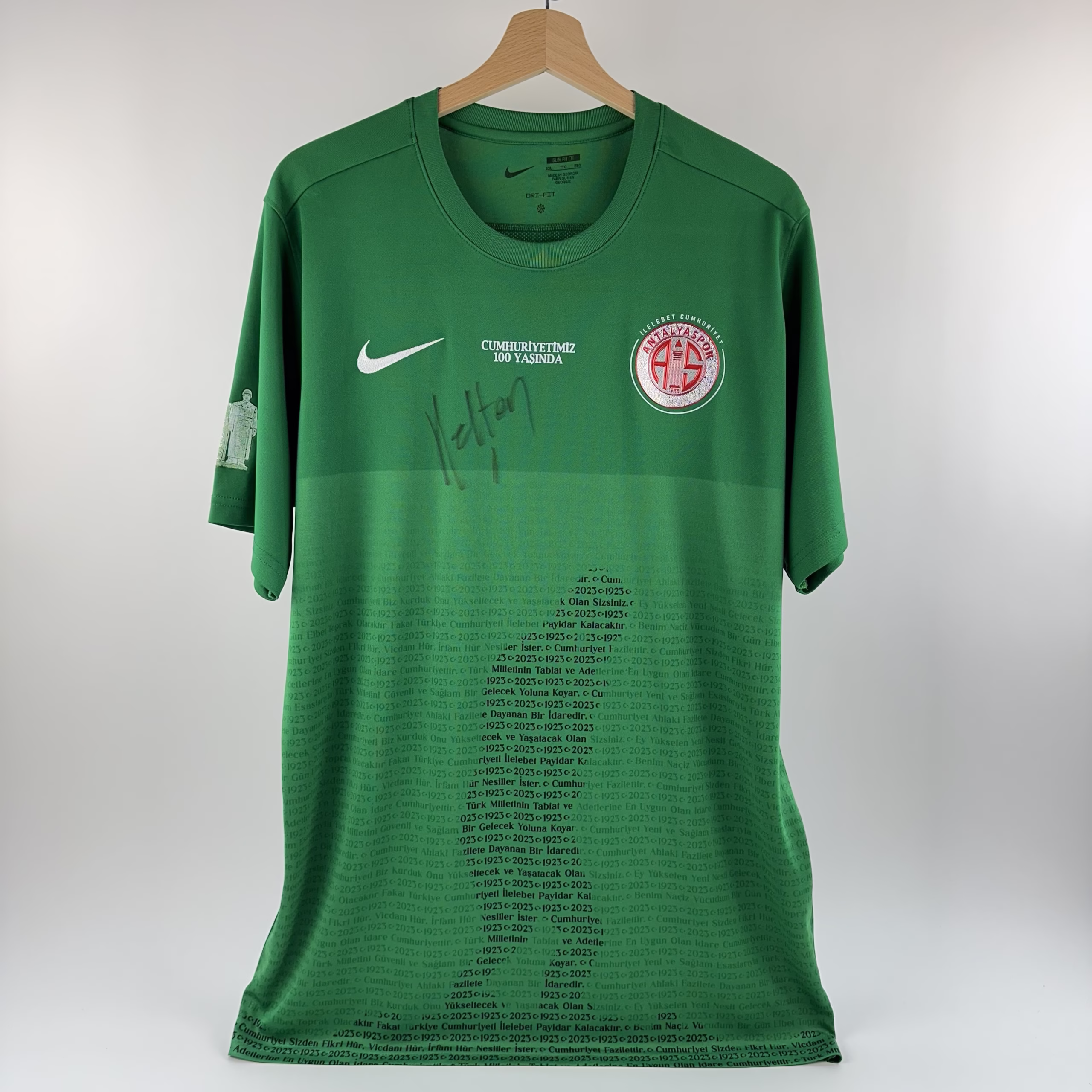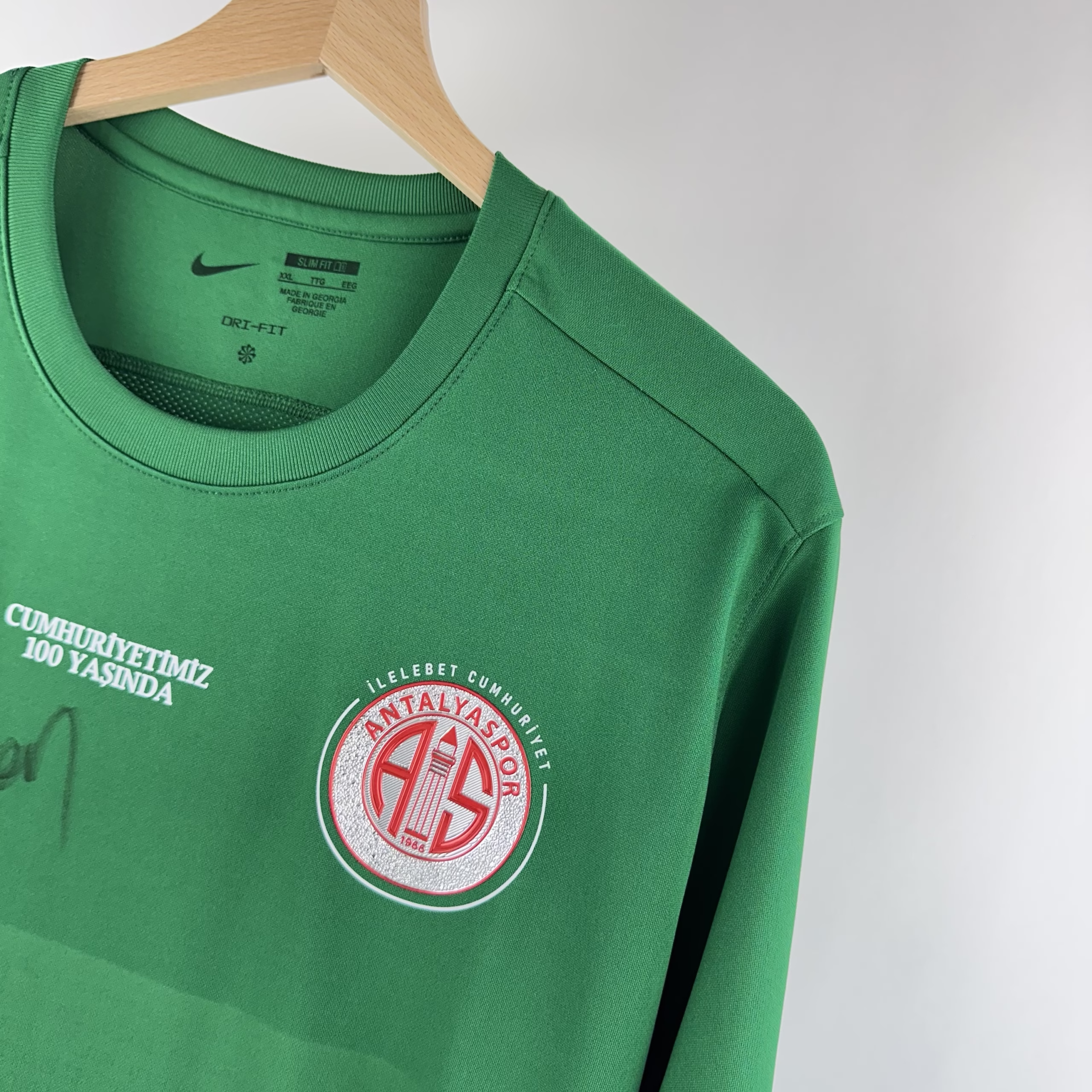Dar kalıptır, beden ölçülerine dikkat ediniz. Üzerinde oyuncunun imzası vardır.